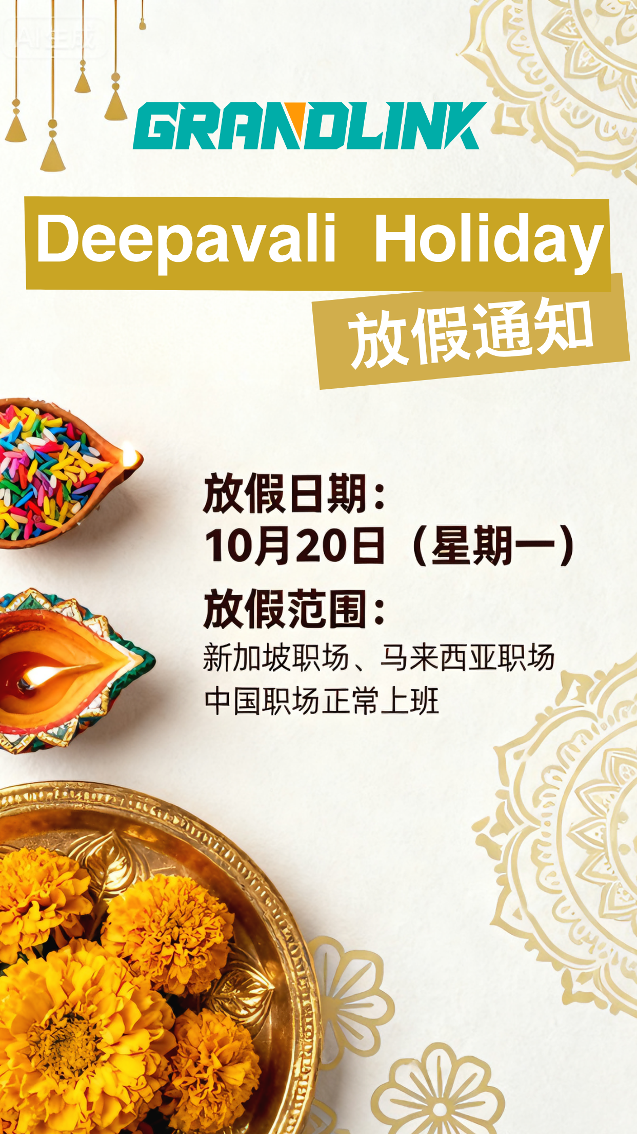 Deepavali Holiday放假通知